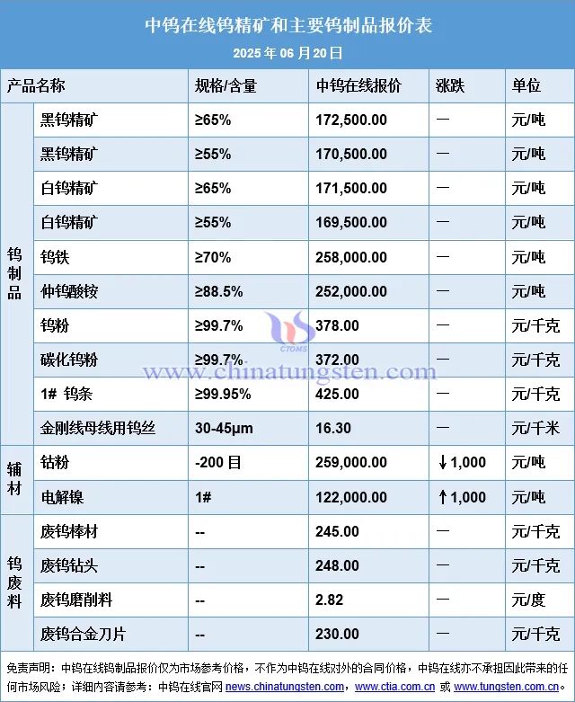 2025年6月20日钨市场行情